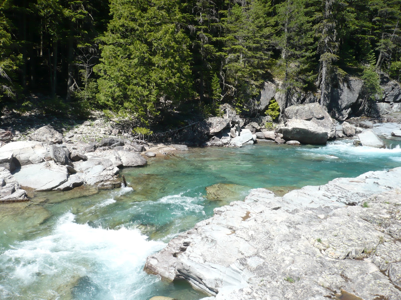 The water of McDonald Creek is a different shade of blue, and even colder!